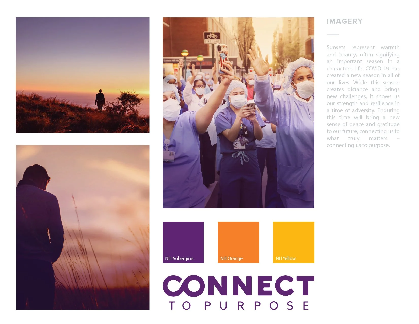 During Covid, I was tasked by Novant Health to help create a logo and supplementary materials for an annual conference aimed at connecting employees. The theme was “Connect to Purpose”. I created a logo, branding assets (look, tone and feel) as well as ideas for marketing materials ranging from billboards to t-shirts.